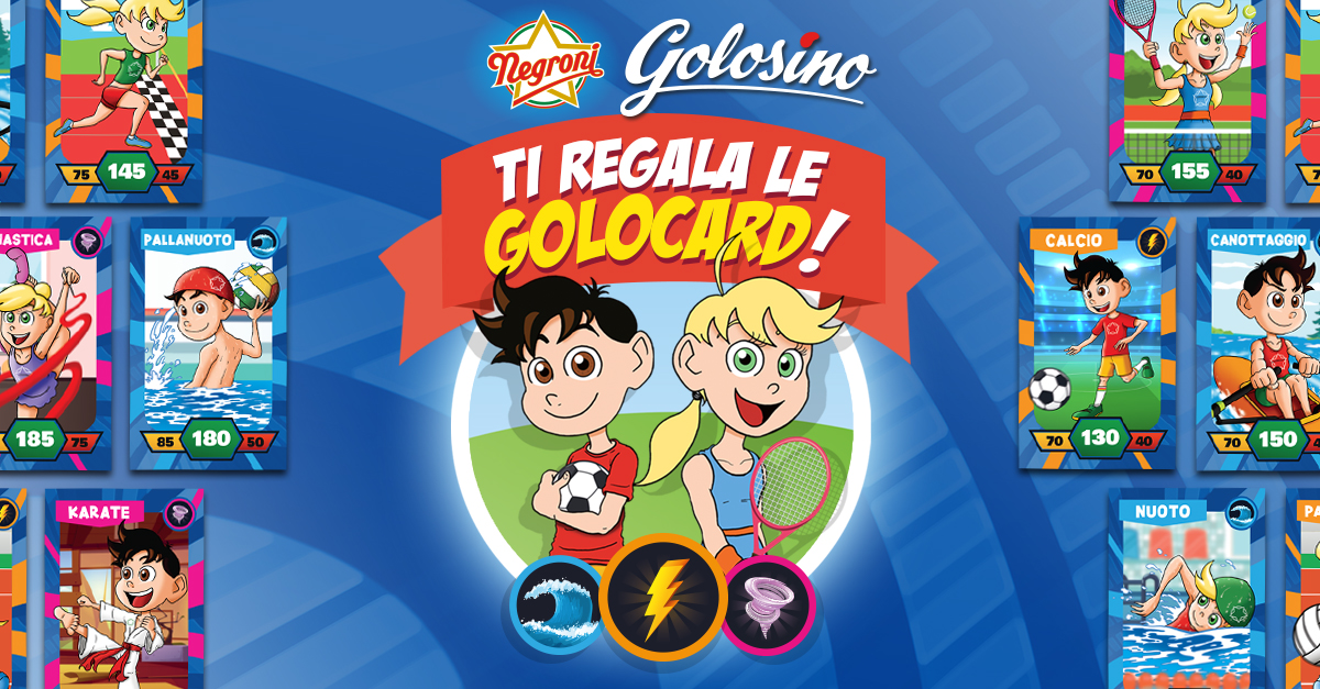 Con la promozione Golocard, Golosino premia tutti 18 November 2021 Un gadget innovativo collezionabile per divertirsi con gli amici e accedere a contenuti digitali Per coinvolgere e divertire i piccoli consumatori in un modo diverso dal solito, Golosino ha proposto una promozione che permettesse a tutti di giocare grazie a un gadget gratuito, inserito all’interno del pack del prodotto promozionato, che coniugasse aspetti formativi e intrattenimento. Golocard: un gioco di carte dedicato allo sport Il gioco, strutturato in un mazzo di carte collezionabili legato al tema dello sport, associa informazioni sulle varie discipline a giochi da fare in compagnia e online. Le carte consentono ai bambini di sfidare i propri amici con diverse modalità di gioco e danno accesso a contenuti e giochi online tramite un QR Code stampato su ogni carta. Giocabilità immediata all’acquisto di ogni pack Golosino Il mazzo completo è composto da 9 carte relative a 9 sport differenti, legati a 3 elementi naturali. Gli sport sono rappresentati sia da soggetti maschili che femminili che animano le diverse carte in modo da garantire la trasversalità rispetto al target. Acquistando un multipack Golosino Negroni ogni consumatore entra in possesso di un pacchetto di 3 carte della promozione, numero sufficiente di carte per poter giocare immediatamente. La creatività delle carte da gioco Golocard Un lato di ogni carta è caratterizzato da un personaggio che rappresenta uno sport: tennis, calcio, pallanuoto, ginnastica, pallavolo, nuoto, karate, atletica, canottaggio. Ad ogni sport è stato attribuito un elemento: fulmine, vento o onda oltre a un punteggio in attacco, difesa e i punti Golosino. Differenti modalità di gioco e tanto spazio alla fantasia Le informazioni presenti su questo lato della carta consentono ai bambini di sfidarsi in tre giochi basati sulla sfida fra gli elementi, sulla base dei punteggi di attacco-difesa o dei punti Golosino, lasciando spazio alla fantasia dei bambini nel creare nuove modalità di gioco. Sull’altro lato della card si trovano, invece, i QR Code che permettono di accedere al contenuto digitale del gadget. Ogni carta dà accesso a contenuti digitali Attraverso i QR Code, i bambini possono accedere ad un minisito dedicato per ciascuno sport dove trovano: una scheda pensata per avvicinarli alla disciplina con informazioni semplici sulle regole e alcune curiosità un gioco interattivo (puzzle, memory o oggetti nascosti) personalizzato su ogni sport. Scopri i contenuti digitali! NUOTO PALLANUOTO CANOTTAGGIO ATLETICA PALLAVOLO CALCIO GINNASTICA KARATE TENNIS Il ruolo di Promosfera nel progetto Golocard Promosfera ha progettato l’iniziativa, ideato i personaggi protagonisti e realizzato graficamente le carte, ha creato la landing con le istruzioni di gioco e un minisito per ciascuna carta/sport con informazioni e giochi interattivi. Per saperne di più, visita il sito della promozione: http://www.golosino-negroni.com La grafica della promozione e il Character Design La grafica doveva essere accattivante e a misura di bambino con personaggi che ricordassero i protagonisti di un cartone animato, sorridenti e positivi, capaci di catturare e conquistare i bambini. Per questo motivo, Promosfera ha coinvolto il proprio reparto grafico per lavorare su un progetto personalizzato di Character Design. Per saperne di più visita la nostra pagina dedicata al Character Design